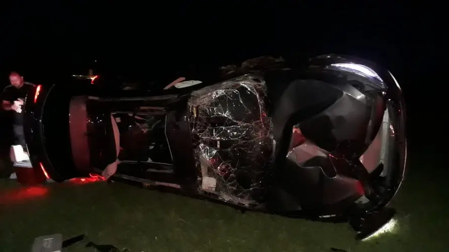 Com o impacto, o carro capotou, parando em um terreno às margens da rodovia.