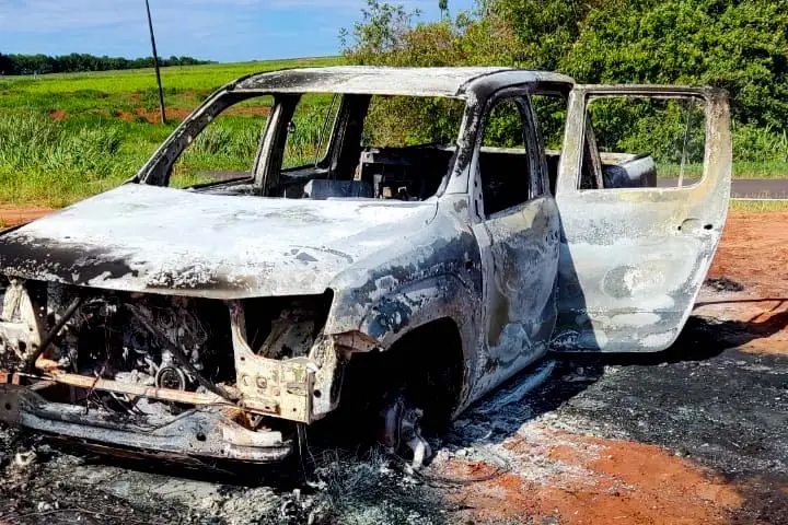 Uma caminhonete cabine dupla da marca Volkswagen foi incendiada e abandonada em uma estrada vicinal próximo ao acesso da cidade de Ivaté, no km 215. O fogo deixou o veículo totalmente destruído.