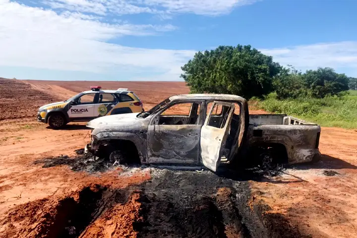 A informação foi confirmada pelo 25º Batalhão da Polícia Militar de Umuarama. O veículo ficou destruído com o fogo e abandonado próximo ao km 215.