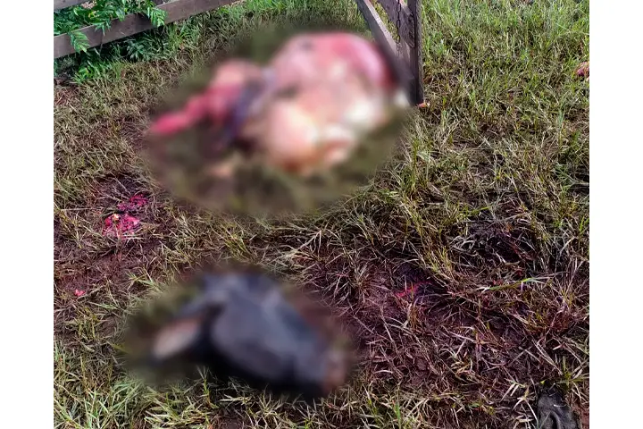 Segundo o proprietário da chácara, localizada na estrada Jacaré, o animal de pelagem escura foi abatido no local e amarrado a mangueira. A cabeça e a barrigada foram deixadas para trás e os bandidos levaram as demais partes do animal.