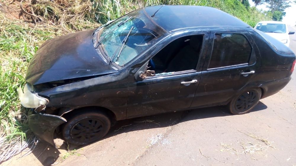 Condutor perde o controle da direção e veículo bate em barranco em rodovia da região
