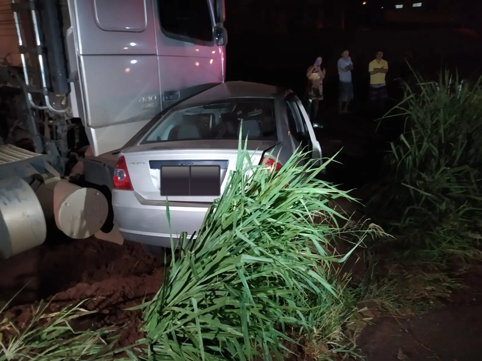 O motorista do carro de 47 anos perdeu o controle da direção ao efetuar uma manobra a esquerda em direção a uma estrada fluvial e acabou colidindo na lateral do veículo contra o caminhão.