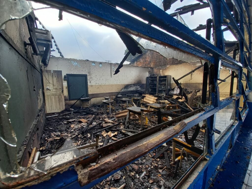 O incêndio de grandes proporções destruiu uma ala da escola que contava com quatro salas de aula, salas administrativas e o almoxarifado. “Atuamos de forma rápida aqui, porque o incêndio estava de grandes proporções por conta das materiais combustíveis que havia, como biblioteca, carteiras e demais itens. Conseguimos conter e controlar para não avançar para outras partes da escola”, ressaltou.