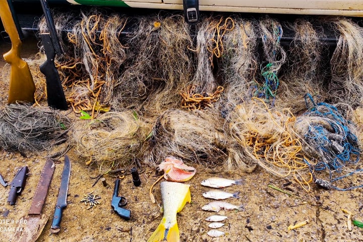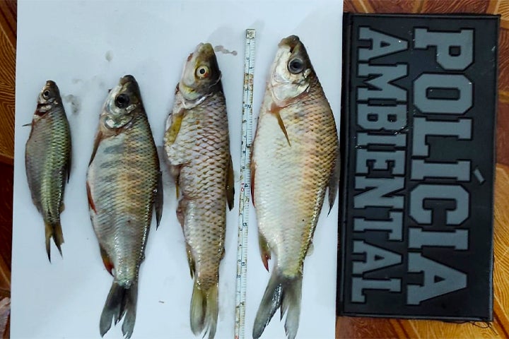 Conforme informações da Polícia Ambiental, dois dos detidos foram encontrados em uma estrada durante o patrulhamento de rotina. A dupla estava em uma motocicleta e transportando objetos apreendidos, entre eles apetrechos de pescaria.