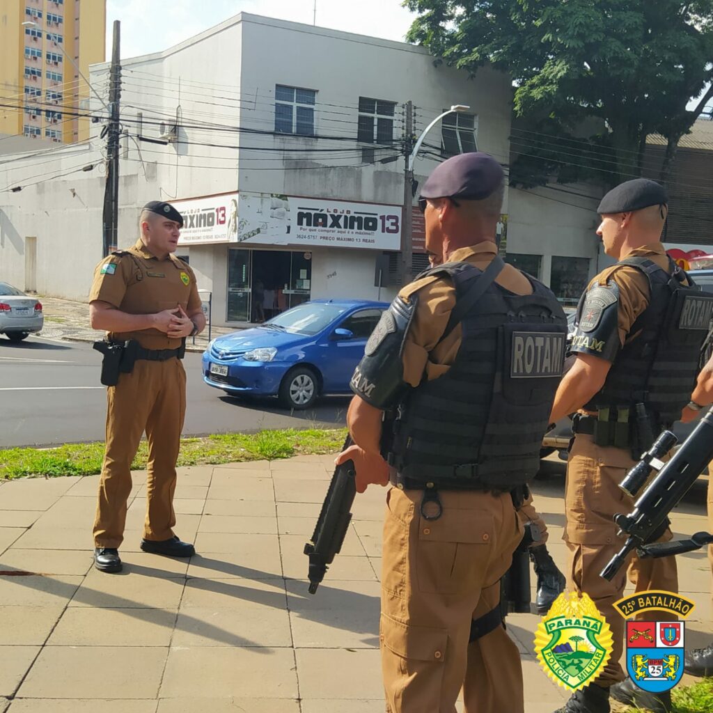 Equipes Rotam do 3° BPM (Pato Branco), 6º BPM (Cascavel), 9º BPM (Paranaguá), 14º BPM (Foz do Iguaçu) e 15º BPM (Rolândia) irão juntamente com a Rotam do 25º Batalhão realizar o policiamento preventivo e repressivo, com foco na saturação de áreas, abordagens a pessoas, a pé e em estabelecimentos, assim como abordagens a pontos de alto índice de tráfico de droga.