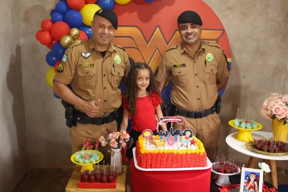 A pequena Lorena Silva Ávida comemorou seis anos de vida em grande estilo. Ao lado da família, e amigos, ela também teve a visita ilustre da Polícia Militar (PM). A garotinha é fã número 1 da corporação e pediu ao pai que os militares participassem da comemoração.
