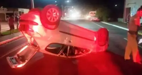 Uma imagem gravada pelo ocupante de um carro flagrou um capotamento em Corbélia, na região Oeste. O condutor do Peugeot seguia pela avenida Rio Grande do Sul, quando fez um movimento em zigue e zague na pista até o capotamento.