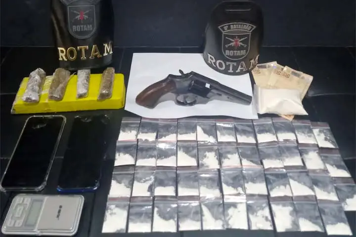 Segundo a PM, durante patrulhamento feito por uma equipe da Rotam, foi abordado um homem de 29 anos, que estava em posse de um revólver calibre .38. Ao ser questionado, ele confessou também possuir drogas em sua residência.