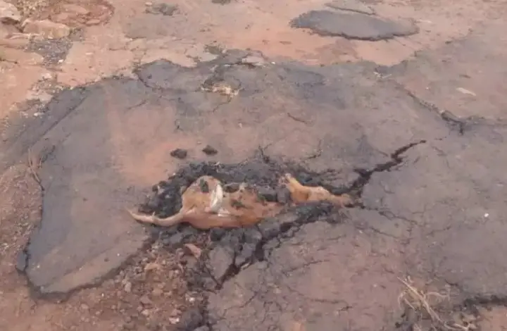 Um morador realizou uma denúncia na última segunda-feira (21), afirmando que trabalhadores da prefeitura de Itumbiara, no sul de Goiás, taparam um buraco do asfalto com um cachorro dentro.