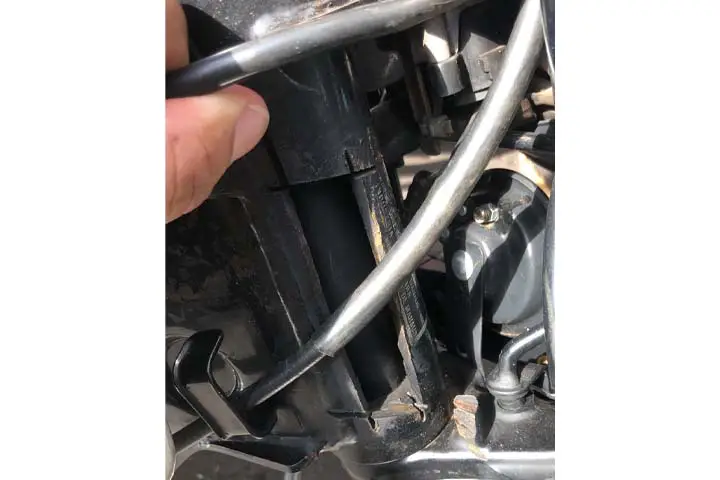 Durante a abordagem, os policiais identificaram o motorista e o garupa e na checagem da documentação foi constatado que a motocicleta estava com a numeração de chassi suprimida (cortada).