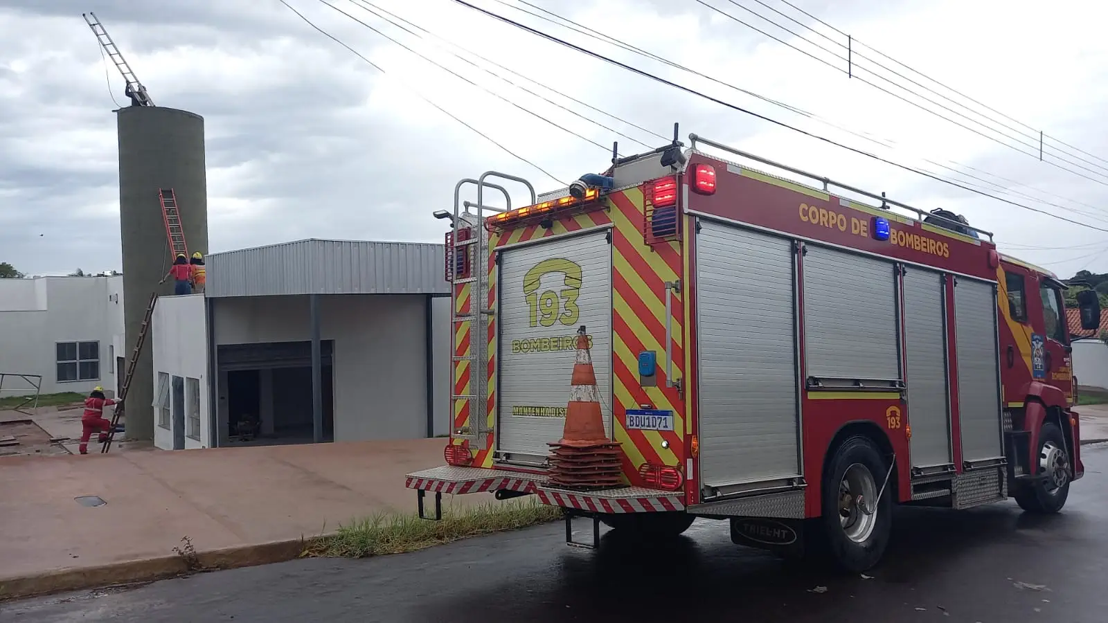 A força do vento com a chegada da chuva derrubou a escada e o Corpo de Bombeiros Militar foi acionado para socorrer o trabalhador.