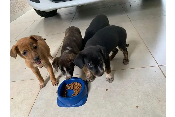 Segundo Eder, três dos quatro adoráveis cachorrinhos são fêmeas. Todos eles já se alimentam de comida sólida, como é possível ver nas imagens abaixo: