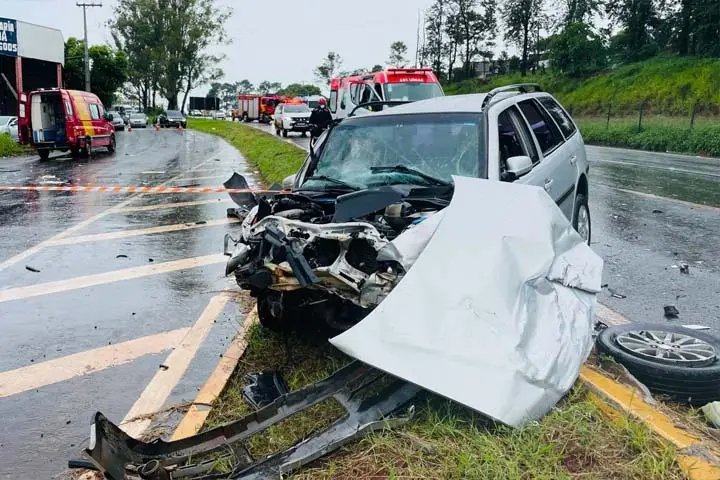 Conforme o Corpo de Bombeiros, o acidente aconteceu após o motorista de um Chevrolet Cobalt perder o controle da direção e invadir a pista contrária. Ele atingiu uma VW Parati.