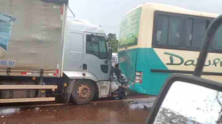 Os veículos envolvidos foram 2 carros, 2 caminhões, um ônibus e uma Van. Ninguém ficou ferido.