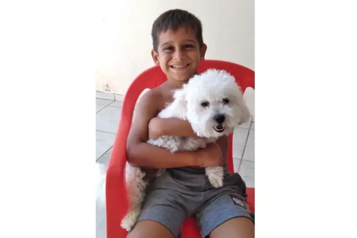 Criança de 7 anos está triste com o desaparecimento do cachorrinho Billy