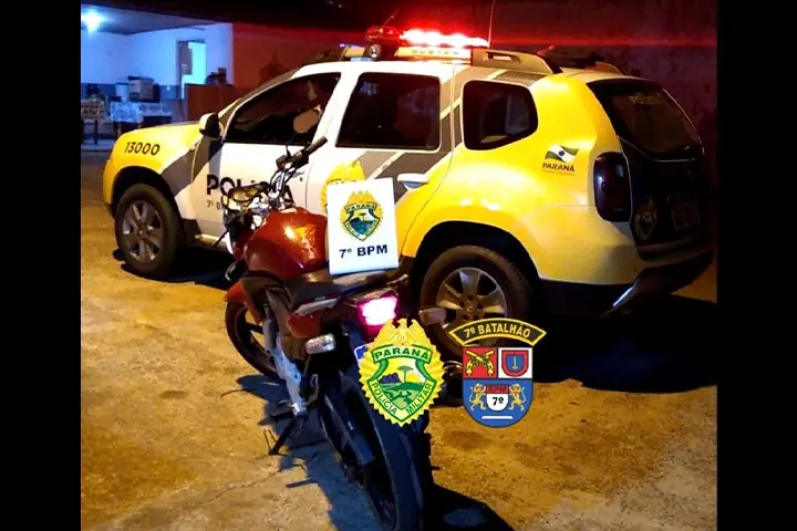 Um jovem de 19 anos foi encaminhado ao destacamento policial de Mariluz na noite de sábado (26). Ele foi flagrado realizando manobras perigosas (empinando) no centro da cidade. De acordo com a PM, uma equipe deu ordem de parada, mas o motociclista não obedeceu e empreendeu fuga.