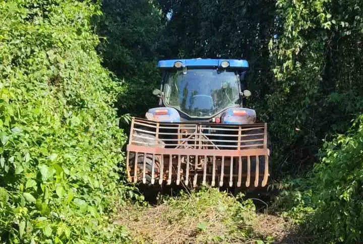 Os policiais foram até um sitio, localizado nas proximidades do Bairro Pé de Galinha (Zona Rural). Ema uma região de mata foi encontrado o referido trator.