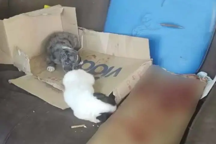 Após a denúncia, a polícia foi até a casa do suspeito e ao chegar no local encontrou o homem com os dois filhotes de cachorro ensanguentados.