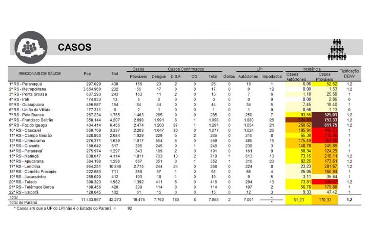 O informe semanal da última terça-feira (29) confirma mais um óbito. Trata-se de um homem, de 68 anos, que era residente de Arapongas, município de abrangência da 16ª Regional de Apucarana.