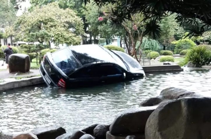 Um motorista descontrolado resolveu inaugurar uma nova categoria de mergulho: Cair com o carro dentro de um tanque de peixes, na Praça do Japão, localizada no bairro Batel, em Curitiba. O caso aconteceu na manhã deste sábado (2), e de acordo com os relatos, o condutor parecia estar embriagado.