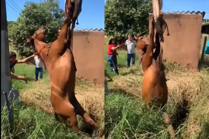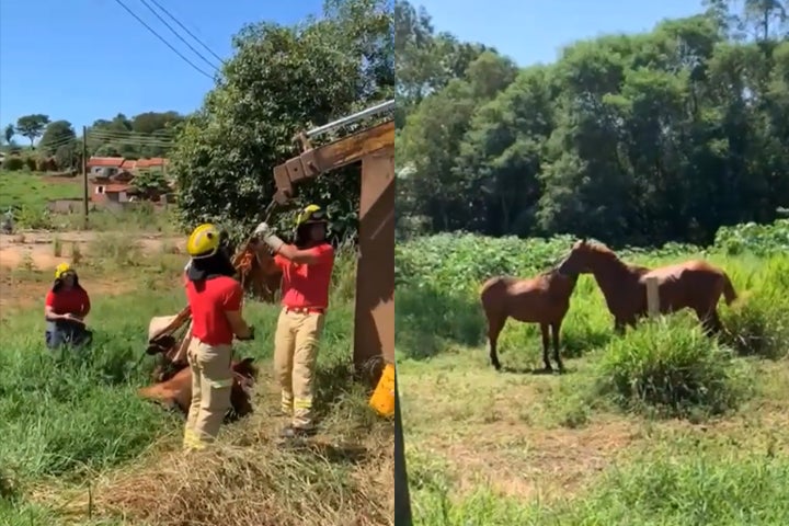 O Corpo de Bombeiros resgatou um cavalo que havia caído dentro de um buraco (caixa de concreto) em Alto Piquiri. Os militares não souberam informar como o animal caiu. O resgate aconteceu neste domingo (3).