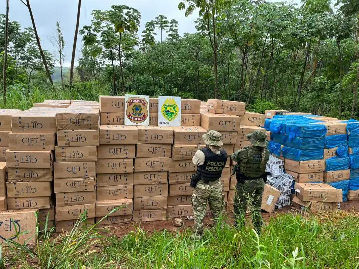 No local, estavam empilhadas uma grande quantidade de caixas de cigarros de origem paraguaia. Dois homens que empilhavam a carga fugiram em meio ao mato quando as equipes policiais deram voz de abordagem.
