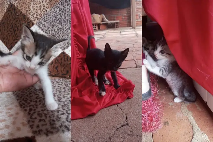 De acordo com Daiane, trata-se de um gatinho macho e três fêmeas, com cerca de aproximadamente um mês de idade. Ela disse que os animais já foram desmamados e se alimentam de ração para filhotes, além de já utilizaram a caixinha de areia.