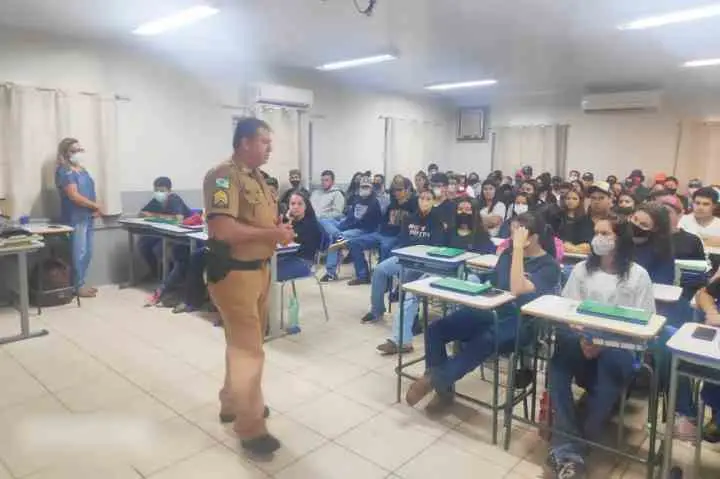 O bate papo com os alunos em Umuarama foi realizado pelo Sargento Edcarlos e Soldado Glaucia do Batalhão de Patrulha Escolar (BPEC), além da coordenação pedagógica e direção do colégio.