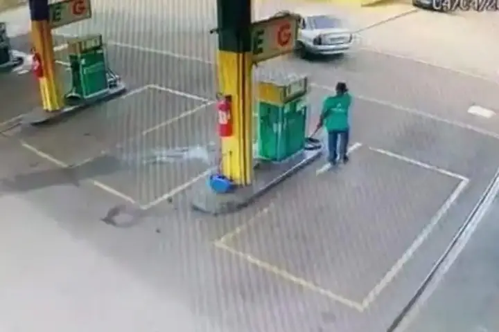 Na filmagem é possível ver o momento em que, após o atendente do posto terminar de abastecer o carro, o motorista imediatamente foge do local.