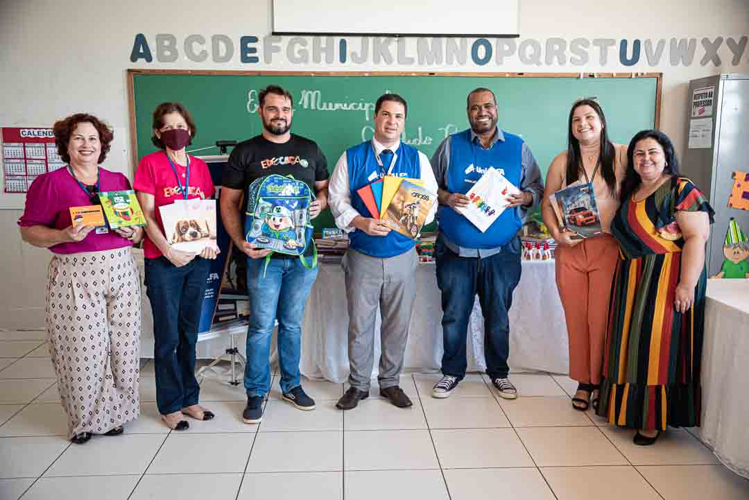 Na tarde desta quarta-feira (6) representantes da UniAlfa Faculdade e da Defensoria Pública do Estado estiveram na Escola Municipal Cândido Portinari, no conjunto habitacional Sonho Meu. O objetivo foi entregar materiais escolares arrecadados junto aos alunos do curso do Direito da UniAlfa.