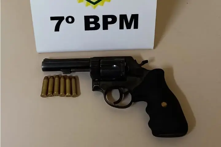 A motocicleta, a arma e o homem foram encaminhados para a Delegacia de Polícia Civil.