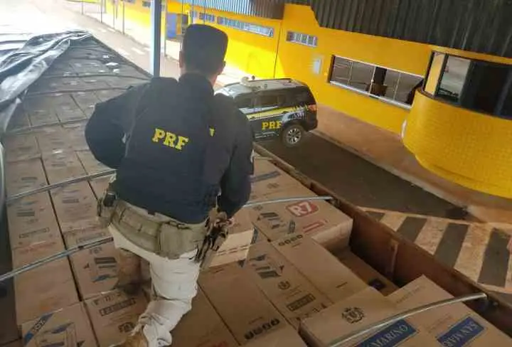 A Polícia Rodoviária Federal (PRF) apreendeu 450 mil maços de cigarros contrabandeados do Paraguai em Icaraíma (PR). O motorista do caminhão saltou do veículo em movimento e conseguiu fugir.