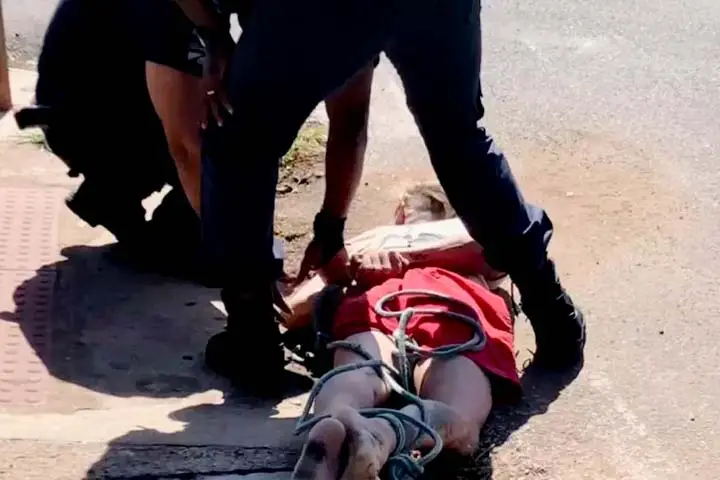O rapaz foi amarrado com uma corda por uma das pessoas que passava no local no momento em que ele estava dominado. Depois de ser amarrado a uma placa de trânsito e ter sido agredido, a Guarda Municipal foi acionada e a vítima levada para o Hospital Metropolitano, onde recebeu atendimento médico e foi encaminhado para a delegacia.
