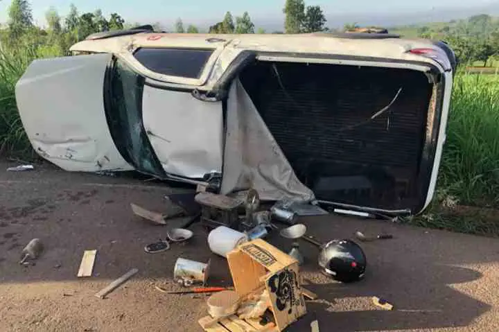 De acordo com informações do radialista Brandão Junior, o capotamento seguido de colisão transversal envolveu uma caminhonete e um veículo VW/Gol.