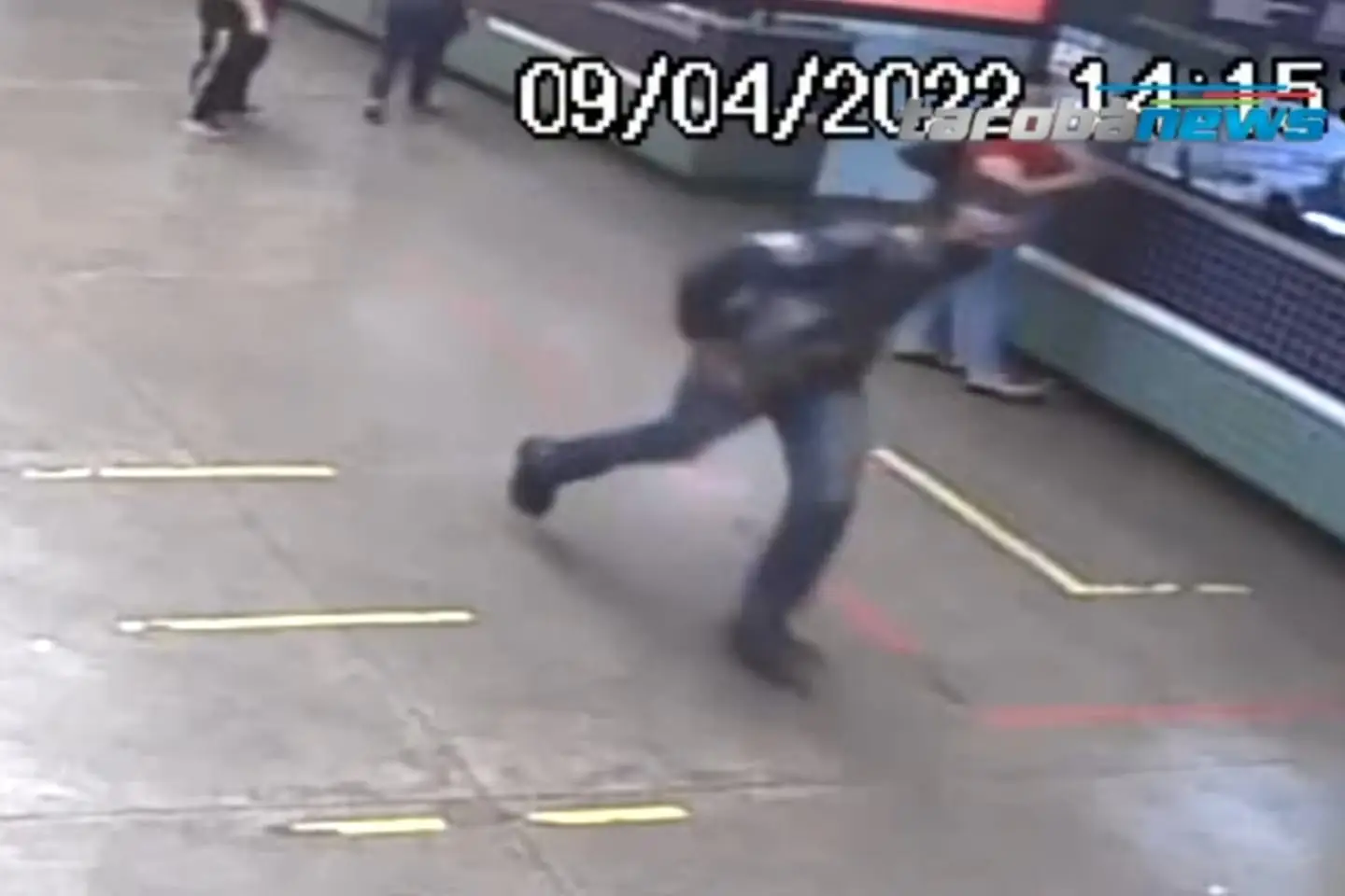 Uma câmera de segurança mostra um homem correndo no interior da rodoviária após um homicídio registrado na tarde de sábado (9) em Cascavel. Um idoso de 75 anos foi morto por aproximadamente 10 golpes de faca. O crime aconteceu dentro do banheiro.