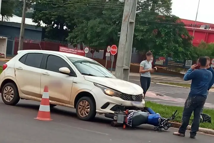 Um jovem de 22 anos ficou ferido em um acidente de trânsito registrado na manhã desta segunda-feira (11). A colisão foi entre um veículo Fiat Argo e uma motocicleta e aconteceu na Avenida Ângelo Moreira da Fonseca nas proximidades do Maxx Atacado em Umuarama.
