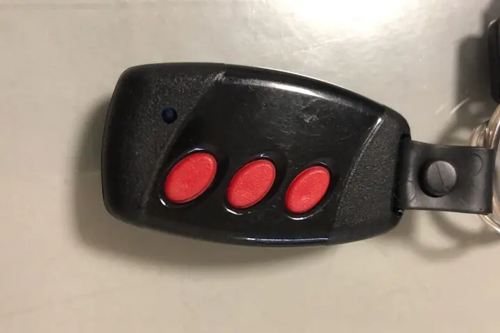 Trata-se de um molho de chaves contendo a chave da moto, um controle eletrônico igual ao da foto acima, além de duas outras chaves.