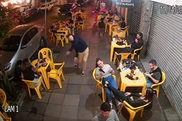 Câmeras de segurança do estabelecimento flagraram o “atentado à vida” de Bruno, e o vídeo foi compartilhado no Twitter do morador, na manhã de terça-feira (12). Confira: