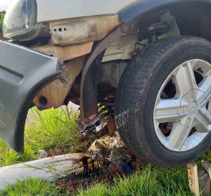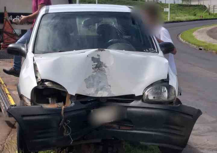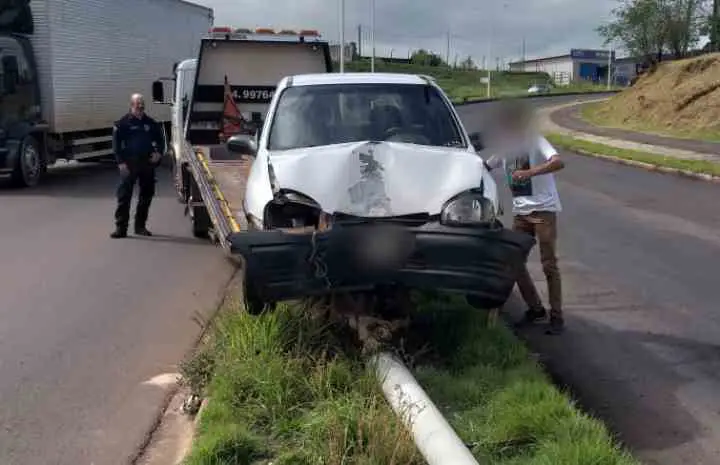 O condutor trafegava com um Corsa de cor branca. As informações coletadas no local são de que ele seguida em direção ao centro da cidade. Em determinado momento perdeu o controle da direção, subiu no anteiro e bateu no poste, que caiu.