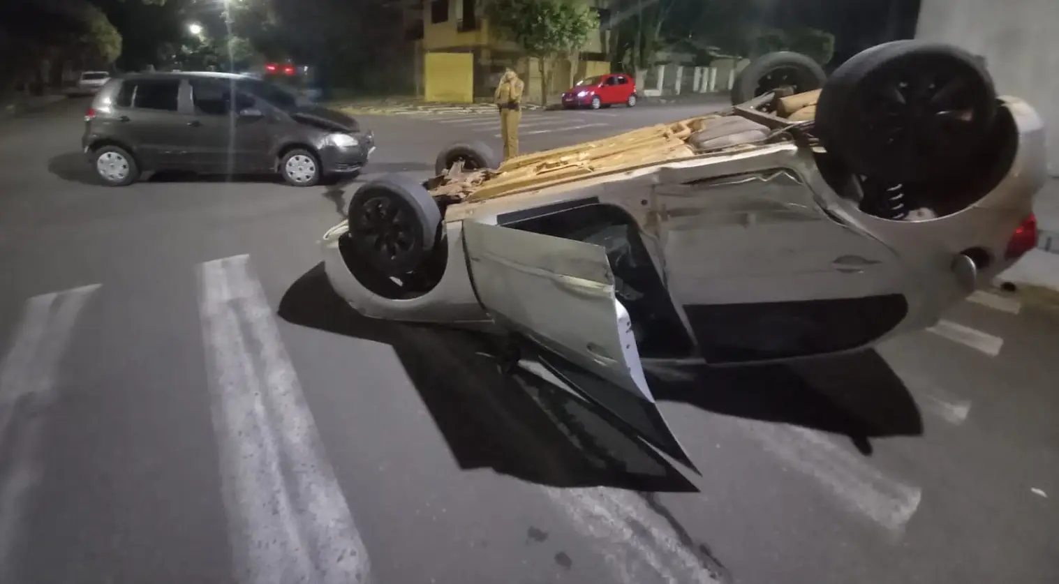 O motorista do veículo Gol, um rapaz de 20 anos, informou que seguia pela Rua Pará quando não observou a sinalização da via e colidiu contra o veículo Fox, que era ocupado por um homem de 51 anos e um menino de 7. Com o impacto da batida, houve o capotamento do veículo Gol.