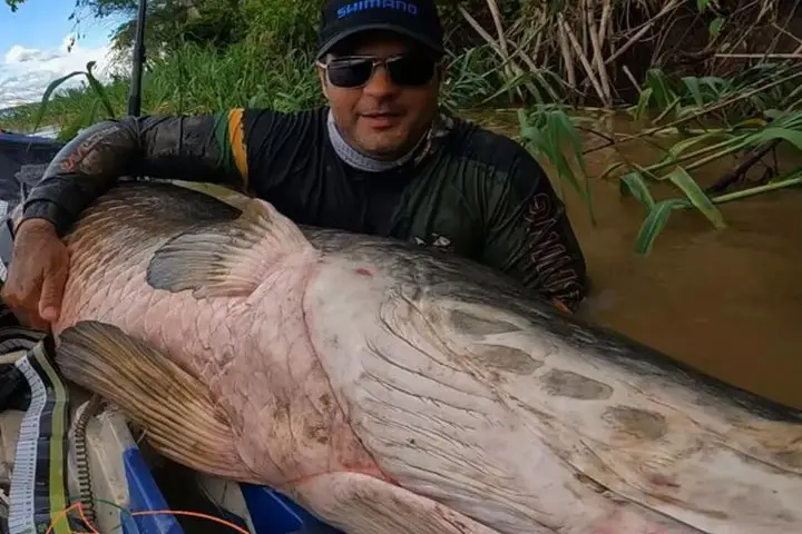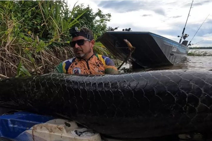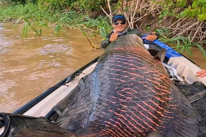 Pescadores capturam pirarucu com mais de dois metros e 130 quilos