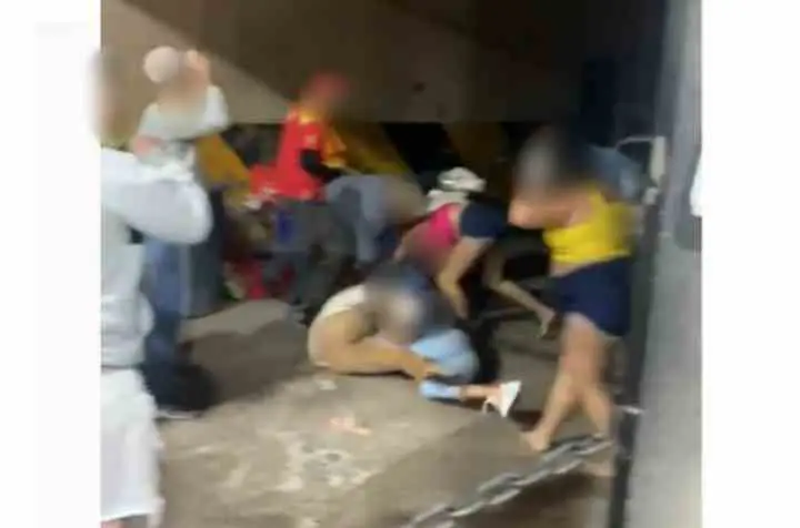 Pelos vídeos é possível ver que o desentendimento envolveu várias mulheres. Elas se agridem e se ofendem, enquanto algumas pessoas tentam separar e outras apenas assistem.