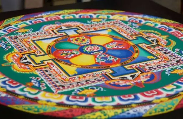 Mandala em sânscrito significa “centro, circulo, anel mágico”. Geralmente no formato circular, representa as forças reguladoras do universo associada com a espiritualidade.