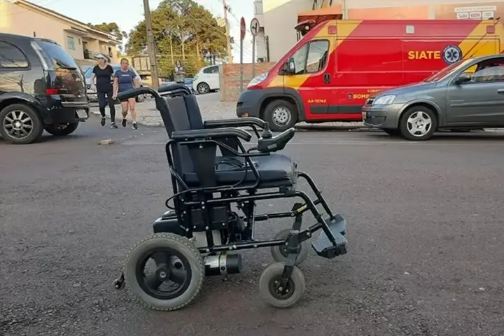Câmeras de monitoramento público registraram, na tarde de segunda-feira (18) o momento que uma mulher cadeirante, de 58 anos foi atropelada por um automóvel enquanto estava atravessando tranquilamente pela rua. Situação se passou no bairro Alto Alegre, em Cascavel.