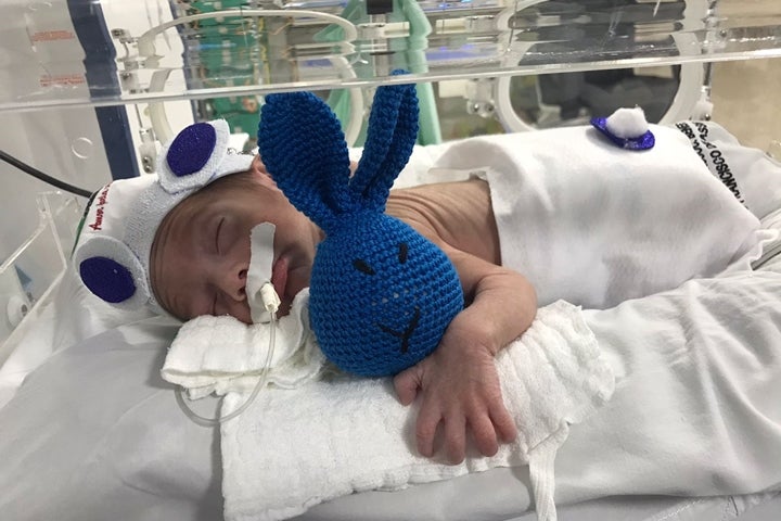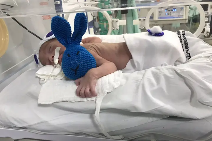 Os coelhinhos de crochê foram confeccionados por ela e sua amiga Ana e levaram um pouco mais de conforto para os bebês internados. Assim como o polvo, o coelhinho tem função terapêutica, promovendo nos bebês prematuros melhoras nos sistemas respiratório e cardíaco, além de os deixarem mais confortáveis e seguros.