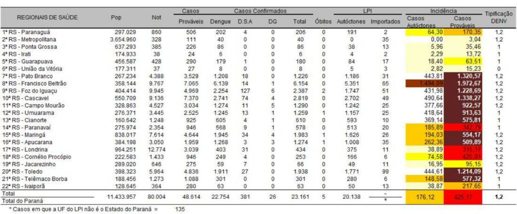 Entre 2019 e 2020, o Paraná enfrentou uma das piores epidemias de dengue da sua história, desde que começou a ser monitorada, em 1991. Naquele período foram registrados 227.724 casos confirmados da doença, com 177 mortes. Até então, o pior período havia sido entre 2015 e 2016, com pouco mais de 56 mil casos e 61 mortes.