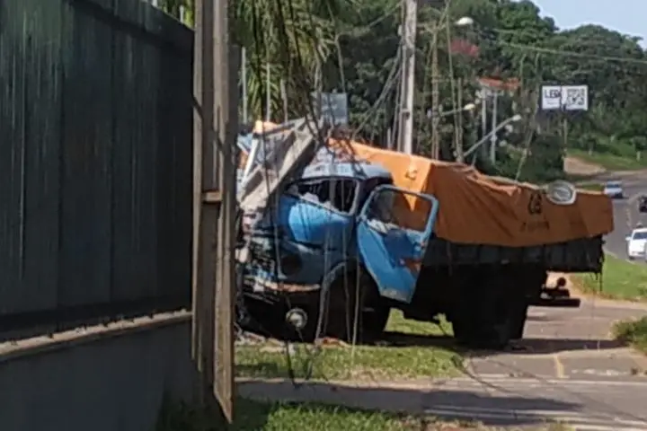 Um caminhão bateu em posto em frente a um condomínio residencial na saída para o distrito de Serra dos Dourados, em Umuarama. O acidente aconteceu por volta das 11h15 desta quinta-feira (21). A polícia está no local, acompanhando a situação. As primeiras informações são de que o motorista teve ferimentos e foi encaminhado para o hospital.