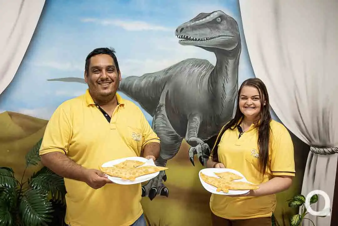 Tatiana e o esposo Rafael Rodrigues criaram um espaço com a identidade da cidade. Um ambiente com um dinossauro na parede e que chama a atenção dos clientes. O espaço é aconchegante e muito atrativo.