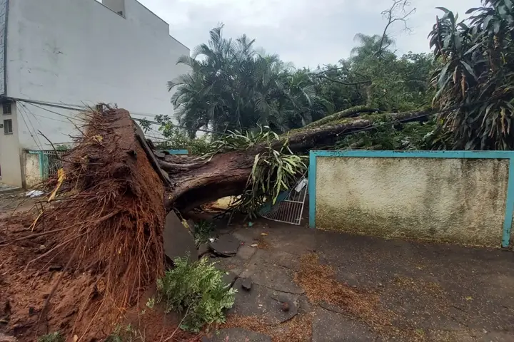 Nas imagens, é possível ver que trata-se de uma árvore com raízes rasas, motivo pelo qual não deve ter suportado as fortes rajadas de vento. A prefeitura está trabalhando para realizar a remoção da árvore caída do local, e até o momento, o proprietário da residência não foi localizado.