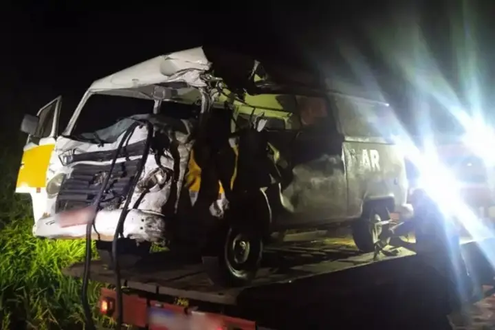 Kombi escolar colide contra caminhão e resulta em duas mortes e uma pessoa ferida